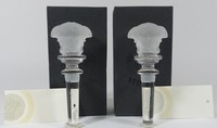 43 - PAIR ROSENTHAL VERSACE FROSTED CRYSTAL STOPPERS Pair of Rosenthal Versace frosted glass wine bottle stoppers with original boxes and certificates of authenticity. Each signed to stem and measures 5" (12.7cm) length.