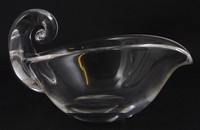 44 - STEUBEN CRYSTAL CREAMER w SCROLLED HANDLE BENTON Steuben Glass Creamer with scrolled handle, designed by Irene Benton in 1947, model 7942. Signed to bottom. Measures 6 1/2" (16.5cm) length.