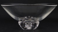 45 - STEUBEN CRYSTAL LARGE FOOTED BOWL Steuben glass footed serving bowl. Signed to bottom. Measures 10" (25cm) diameter and 4 1/2" (11cm) height.