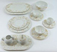 4 - 101pc ROSENTHAL MAGIC FLUTE CHINA SERVICE Rosenthal 'Magic Flute' porcelain China service designed by Bjorn Wiinblad, embossed with gold gilt accents. 101 pieces to include 12 dinner plates-11 1/4"; 12 salad plates-8 3/4"; 12 fruit/dessert bowls-4 1/4"; 12 bread & butter plates-7 1/2"; 6 flat cream soup bowls-6" with 12 saucers-7 3/8"; 12 teacups-3 3/4" with 12 saucers-6"; 6 ashtrays-4 1/2"; 2 oval serving platters 16" and 13 1/4"; 1 vegetable bowl-6 3/4"; covered sugar-4 1/2" and tray 12"; plus a creamer-5" of similar design (not Rosenthal).