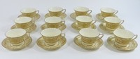 5 - 24pc ROYAL WORCESTER 'EMBASSY' TEACUPS & SAUCERS A dozen Royal Worcester England fine bone China porcelain tea cups with saucers. All pieces marked to bottom. Teacups measures 4 1/2" (11.5cm) width with handle. Saucers measures 5 1/2" (14cm) diameter.