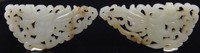 8 - PAIR CHINESE WHITE JADE APSARA CARVINGS Pair of Chinese carved white jade flying Asparas. Each measures approx 3" (7.6cm) length. Total weight 37.6g.
