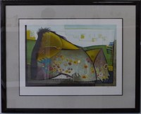 9 - ANGEL BOTELLO LITHOGRAPH GIRL & FLOWERS Angel Botello (Spanish/ Puerto Rican 1913 -1986) lithograph depicting a reclining girl with flowers. Signed lower right and numbered lower left 86/150. Measures 31 1/2" (80cm) x 23 1/2" (60cm) + 4 1/2" (11cm) mat & frame.