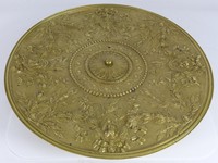10 - FRENCH GILT BRONZE TAZZA CENTERPIECE Very heavy French gold gilt bronze tazza depicting cherub faces amongst foliage with floral scrolled design to center. Measures 12" (31cm) diameter. Total weight 2.2kg.