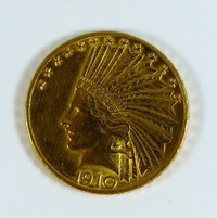 12 - $10 GOLD INDIAN EAGLE 1910 $10 Gold Indian Eagle. Dated 1910. Total weight 16.8g.
