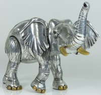 1 - FRANK MEISLER ELEPHANT SCULPTURE Frank Meisler (German/Israeli, born 1929) Judaica metal sculpture depicting an elephant with articulating head and ears. Signed behind left ear and numbered 9/480. Includes marble base. Measures 13" (33cm) length.