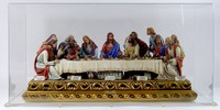 20 - CORTESE CAPODIMONTE LAST SUPPER PORCELAIN GROUP Capodimonte Italian porcelain group depicting The Last Supper with Jesus and his 12 disciples. Each figurine is sculpted with the finest detail. Holds Capodimonte mark and is artist signed by Cortese. Sculpture measures 25" (63.5cm) x 12" (30.5cm). Includes acrylic display case that measures 28 1/2" (72cm) x 15 1/2" (39cm) x 14" (35cm) height.