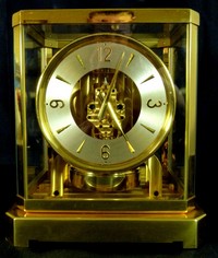 2 - LECOULTRE CO ATMOS BRASS ENCASED CLOCK LeCoultre Co Atmos brass encased clock. Measures 9 1/4" (23cm) height by 8 1/2" (21cm) width.