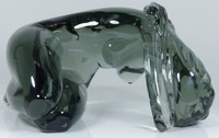 41 - LOREDANO ROSIN MURANO GLASS SCULPTURE OF NUDE Loredano Rosin, Italian (1936-1991) glass sculpture depicting a nude woman. Signed to lower right leg. Measures 12" length (30.5cm) x 7" (18cm) height.