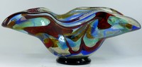 43 - SERGIO COSTANTINI MURANO ART GLASS CENTER BOWL Sergio Costantini Murano art glass Vetro Artistico large centerpiece bowl. Signed to side of base. Has original Murano Vetro Artistico sticker to bottom. Also includes Costantini certificate of authenticity. Measures 25" (63cm) length.