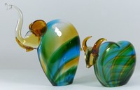 45 - 2pc OGGETTI MURANO GLASS SCULPTURES ELEPHANT & OX 3 Oggetti Murano glass sculptures of animals: elephant and ox / bull. Each piece holds Oggetti Italy sticker and elephant is signed to side "Nillam L." (?). Elephant measures 11 1/2" (29cm) height.