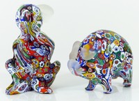 46 - 2pc MILLEFIORI ITALIAN ART GLASS ANIMALS 2 Millefiori Italian art glass animals including a rabbit and pig with frosted ears and tails. Pig measures 3 1/4" (8cm) length.