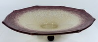 6 - SCHNEIDER ART GLASS FOOTED BOWL MOTTLED PURPLE Charles Schneider mottled amethyst to white art glass bowl having octagonal shape raised upon three applied glass feet. Signed to underside. Measures 9 1/2" (24cm) diameter.
