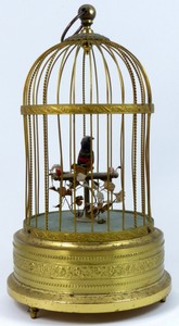 13 - KARL GRIESBAUM GERMAN MECHANICAL BIRD MUSIC BOX Karl Griesbaum German mechanical automaton song bird music box. Bird tweets and moves when wound. Marked KG to underside and marked "Made in Germany". Measures 11 1/2" (29cm) height.