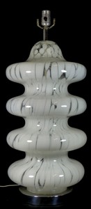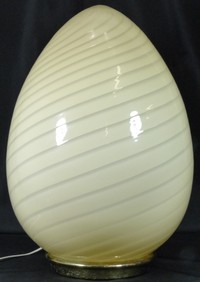 19 - VETRI MURANO ART GLASS LARGE EGG FORM LAMP Vetri Murano mid-century modern hand blown glass 'egg' lamp. Holds original label. Measures 18 1/2" (47cm) height.