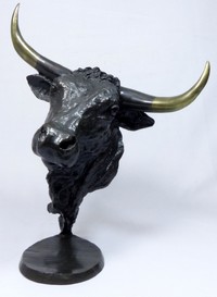 21 - MARK HOPKINS 'BULL' BRONZE SCULPTURE Mark Hopkins (American, 20th century) bronze sculpture titled 'Bull'. Signed and dated 1992 to back of bronze and numbered 741/950. Includes certificate of authenticity. Measures 16 1/4" (41cm) height. Weight approximately 19.5lbs.