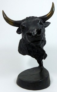 22 - MARK HOPKINS 'BULLS DOMINION' BRONZE SCULPTURE Mark Hopkins (American, 20th century) bronze sculpture titled 'Bull's Dominion'. Signed and dated 1996 to bronze base and numbered 65/950. Includes certificate of authenticity. Measures 10 1/4" (26cm) height.