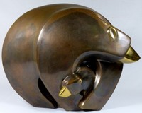 28 - SUZANNE SABLE READY FOR A STROLL BRONZE SCULPTURE Suzanne Sable (1926-2005) modern bronze sculpture depicting mother bear with cub. Titled 'Ready for a Stroll'. Signed to back, dated 1986 and numbered 2/12. Includes certificate of ownership and appraisal from 1987. Measures 18" (46cm) length x 14 1/2" (37cm) height. Weight approximately 49lbs.