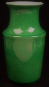 32 - CHINESE GREEN GLAZED PORCELAIN VASE 19th century Chinese green crackle glaze porcelain vase with white interior. Six character calligraphy mark inside of a double circle to underside. Measures 8 1/4" (21cm) height.