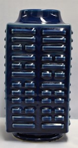 35 - CHINESE BLUE GLAZED PORCELAIN SQUARE CONG VASE 19th century Chinese blue glazed square porcelain cong vase. Six character calligraphy mark to underside. Measures 11 1/2" (29cm) height