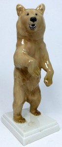 37 - MEISSEN PORCELAIN FIGURE OF STANDING GRIZZLY BEAR Meissen porcelain figurine depicting a standing grizzly bear. Marked to underside. Measures 7 1/2" (19cm) height.