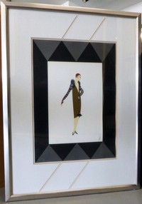 3 - ERTE ART DECO LITHOGRAPH SIGNED & NUMBERED Erte (1892-1990) Romain de Tirtoff art deco lithograph depicting a woman / fashion model. Signed lower right and numbered 244/300 lower left. Embossed seals to extreme lower left. Measures 23 1/2" (59.5cm) x 16 1/2" (42cm) + 6" (15cm) mat & frame.