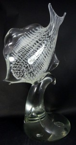 42 - LICIO ZANETTI MURANO ART GLASS FISH SCULPTURE Licio Zanetti Murano art glass fish sculpture with white lattice pattern throughout fish. Signed to underside. Measures 18" (46cm) height.