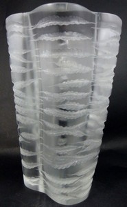 43 - LALIQUE CRYSTAL 'SENLIS' FROSTED WAVES VASE Lalique France crystal 'Senlis' art glass vase having frosted waves design and scalloped rim. Signed to underside. Measures 11 1/2" (29cm) height.