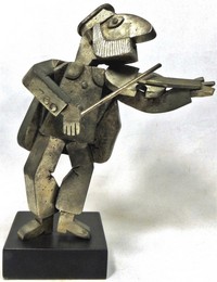 9 - FRANK MEISLER 'HASIDIC FIDDLER' SCULPTURE Frank Meisler Judaica 'Hasidic Fiddler' cast metal sculpture from the 'Old City Jaffa Israel' series. Numbered 84/250 to base. Measures 11" (28cm) height + 1 1/2" (4cm) base.