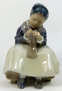 26 - ROYAL COPENHAGEN 'AMAGER GIRL' PORCELAIN FIGURINE Royal Copenhagen porcelain figure 'Amager Girl Knitting' #1314. Factory marks to underside. Measures 6" (15.2cm) height.