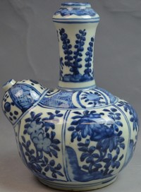 32 - CHINESE MING BLUE & WHITE PORCELAIN FLOWER POT Chinese Ming Dynasty blue and white porcelain with hand painted floral panels throughout. Circa 17th century. Measures 9 1/4" (23.3cm) height.