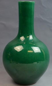 33 - 19th C CHINESE GREEN GLAZED PORCELAIN VASE 19th century Chinese green crackle glazed porcelain vase of bulbous form. Measures 14" (35.5cm) height.
