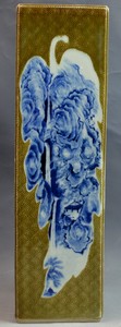 35 - 20th C CHINESE TEA-DUST BLUE & WHITE SQUARE VASE 20th century Chinese tea-dust glazed square porcelain vase having blue and white hand painted panels. Measures 17 1/2" (44.5cm) height.