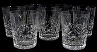 48 - 7pc WATERFORD LISMORE DOUBLE OLD FASHIONED GLASSES 7pc Waterford Lismore cut crystal double old fashioned tumblers. Each signed to side and measures 4 3/8" (18.7cm) height.