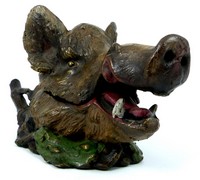4 - BRONZE BOAR HEAD INKWELL AFTER CHRISTOPHE FRATIN Bronze inkwell in the form of a boar's head after Christophe Fratin. Measures 7" (18cm) length. Total weight 1.47kg.