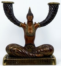 5 - ERTE 'FORTUNE' BRONZE CANDLE HOLDER SCULPTURE Frederick E. Hart (1943-1999) double-casted lucite sculpture titled 'Herself'. Signed to lucite base. Signed again, numbered and dated 1984 to underside side of sculpture. Measures 18" (45.5cm) length x 12 1/2" (31.5cm) height + 2 1/4" (5.5cm) lucite base. Includes lighted and manually rotating pedestal measuring 44 1/2" (113cm) height x 12" (30.5cm) square.