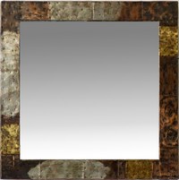 9 - PAUL EVANS FOR DIRECTIONAL PATCHWORK MIRROR Paul Evans (1931 - 1987) patchwork mirror consisting of patinated and welded steel, brass, copper and pewter. Circa 1970s. Measures 30" (76cm) square x 3" (7.5cm) depth.