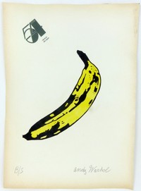 10 - ANDY WARHOL BANANA DRAWING ON PAPER SIGNED Attributed to Andy Warhol hand painted 'The Velvet Underground' banana on Studio 54 letterhead paper. Signed in pencil lower right. Measures 13 1/4" (33.5cm) x 9 1/2" (24cm).