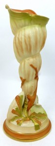 22 - ROYAL WORCESTER SHELL FORM PORCELAIN VASE Royal Worcester blush ivory vase in the form of a shell wrapped in coral. Holds factory marks to underside and numbered 4434432, 2351. Measures 9" (23cm) height.