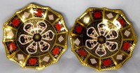 27 - PR ROYAL CROWN DEBRY IMARI PORCELAIN COMPOTES Pair of Royal Crown Derby Imari porcelain compotes. Each marked to underside and numbered 1128. Each measures 11 3/4" (30cm) diameter.