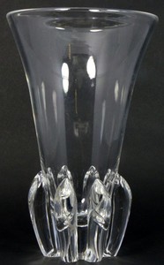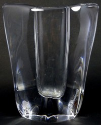 33 - STEUBEN CRYSTAL MODERNIST VASE Steuben clear crystal modernist vase having eight lobes applied to base. Signed to underside. Measures 9 1/2" (24cm).