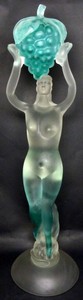 40 - MURANO GLASS NUDE FEMALE HOLDING GRAPES Murano or Venetian art glass figure of a nude female holding a bunch of grapes above her head. Measures 24 1/2" (62cm) height.