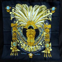 10 - HERMES PARIS 'MEXIQUE' SILK SCARF CATY LATHAM Hermes Paris 'Mexique' silk scarf in black by Caty Latham. Measures 35" (89cm) square. Includes original bag from Hermes in Paris.
