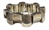 15 - ANTONIO PINEDA TAXCO 970 SILVER BRACELET Antonio Pineda Taxco 970 sterling silver bracelet in the thumbprint pattern. Marked 970, Mexico with Antonio Pineda crown and eagle-17 mark, ZZ-511. Outer circumference measures approx 6 3/4" (17.2cm). Total weight 113.4g.