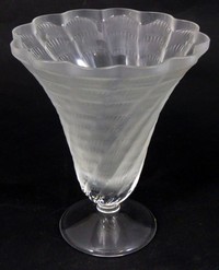 21 - LALIQUE 'LUCIE' CRYSTAL TRUMPET VASE Lalique frosted crystal trumpet vase with scalloped rim and swirled waves design. Marked to underside. Measures 5 7/8" (15cm) height.