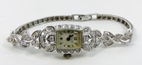 25 - BULOVA 14kt WHITE GOLD DIAMOND DECO WATCH Bulova 14kt white gold diamond deco ladies watch. Marked 14K to back of case. Measures 7" (17.8cm) length.