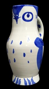 31 - PABLO PICASSO MADOURO 'OWL' PITCHER Pablo Picasso (Spanish/French, 1881-1973), 'Owl' glazed white earthenware pitcher. Painted in blue, inscribed "Edition Picasso" and having "Madoura" and "Edition Picasso" pottery stamps to underside. Measures 9 3/4" (25cm) height.