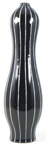 39 - SAN POLO VENEZIA ITALY POTTERY VASE San Polo Venezia glazed italian pottery vase of double gourd form having vertical white stripes over a black ground. Marked to underside and numbered 0/RG102. Measures 11 1/2" (29cm) height.