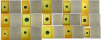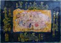 43 - YNEZ JOHNSTON 'PLACE OF INTIMATIONS' MIXED MEDIA Ynez Johnston (American, born 1920) sumi ink, dyes and acrylic painting on handmade rice paper. Titled "Place of intimations". Measures 39" (99cm) x 27 1/2" (70cm) + 4 1/2" (11.4cm) mat & frame.