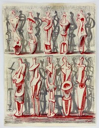 45 - HENRY MOORE 'STUDIES FOR SCULPTURE' LITHOGRAPH Henry Moore (British, 1831-1895) 'Studies for Sculpture' color lithograph. Signed in the plate lower right. Measures 12 1/8" (30.7cm) x 9 1/8" (23cm).